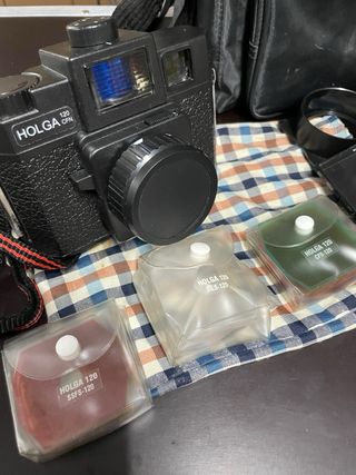 In vendita lotto di fotocamere analogiche lomografe Holga 120 e Fisheye 2. Ottime per sperimentazione, si possono ottenere texture vintage, fantastici effetti visivi tipo flare, aberrazioni incantevoli, scegliere fino a 4 tipi di flash colorati. Scattare più foto senza cambiare il rullino. Include fotocamera Holga 120 CPN, fotocamera Fishdye2 con lente fisheye, accessori come filtri colorati (rosso, arancione, blu) e diverse lenti psicologiche. Borsa da trasporto inclusa. Molto ben curate e protette. Sono praticamente nuove.