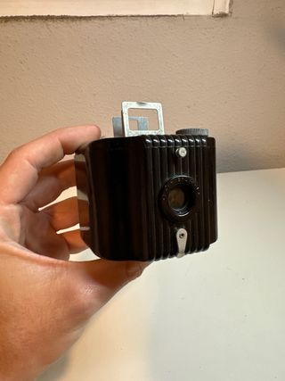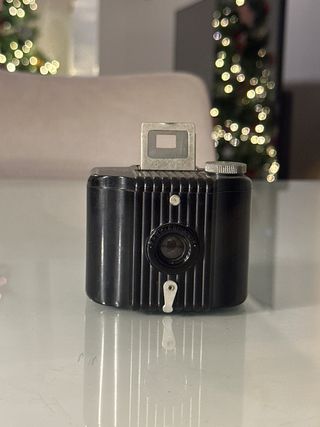 La storica fotocamera Kodak Baby Brownie è una delle precursori della fotografia moderna. Questo esemplare del 1930, con i suoi quasi 100 anni, ci mostra come funzionavano le prime fotocamere portatili: attraverso un rapido lampo di luce all'interno di una'scatola nera', fissando l'immagine sulla pellicola. È una splendida aggiunta per qualsiasi collezionista. Per farla funzionare, è necessario un rullino e un tappo per il cerchio sul retro. Non esitate a chiedere.