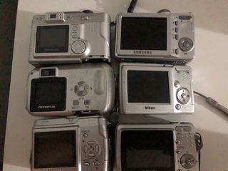 In vendita lotto di 6 fotocamere digitali di diverse marche. Tutte sono di colore argento e presentano alcuni difetti (manca una copertura a tutte e alcune hanno lo schermo graffiato), motivo per cui sono vendute per pezzi di ricambio o riparazione. - Venduto così com'è, senza batterie, pile o caricabatterie. - Include modelli di Nikon, Olympus, Panasonic, Samsung e Sony. - Varietà di risoluzioni e caratteristiche. - Prezzo negoziabile