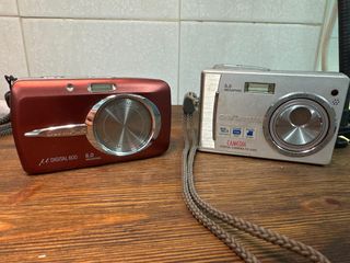 Due fotocamere funzionanti, utilizzate molto dai miei figli. I pulsanti sono un po' usurati ma riescono ancora a scattare foto e funzionano correttamente