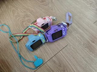 Si vendono due fotocamere digitali VTech Kidizoom Smile e una stampante istantanea, con la possibilità di acquistare rulli di ricambio e divertirsi colorando le foto. La Vtech funziona a batteria e la stampante istantanea include un cavo per la ricarica. Si vende per inutilizzo, poiché la bambina è cresciuta.