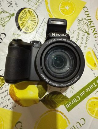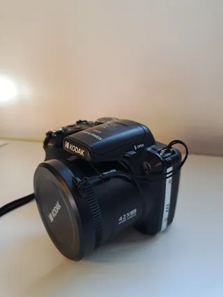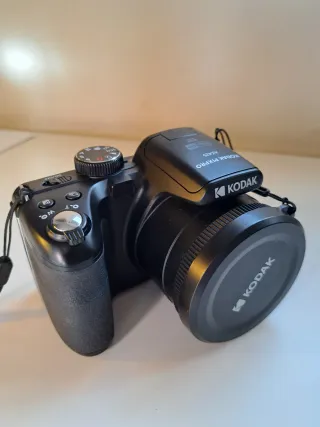 Macchina fotografica Kodak Pixpro AZ426. - Obiettivo zoom ottico. - Registrazione video Full HD. - Display LCD. È una fotocamera digitale Kodak PIXPRO di colore nero, con un corpo compatto ma dotato di impugnatura ergonomica per una presa sicura. Monta un obiettivo asferico HD con zoom ottico 42x, equivalente a 24–1008 mm, che permette di fotografare sia scene molto ampie sia soggetti lontani. L’obiettivo è grande e centrale, mentre sopra è presente un flash integrato a scomparsa. Nel complesso è una fotocamera versatile e facile da usare, pensata per chi vuole un buon livello di zoom e praticità senza passare a una reflex.