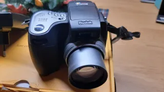 Fotocamera digitale Kodak con una risoluzione di 4,0 megapixel. Design compatto e leggero. Schermo LCD per visualizzare le foto. Zoom ottico 10x per ingrandire l'immagine. Il meccanismo di apertura del flash è danneggiato, ma può essere aperto manualmente. Il resto funziona perfettamente.