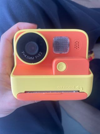 Fotocamera istantanea dal design divertente in colori arancione e giallo, pensata per i più piccoli. Ideale per catturare momenti e averli al instante. - Lente con specifiche F=4.1MM F=2.2. - Flash integrato. - Pulsante di scatto con icona di sole. - Indicatore GET PHOTOS per la stampa. - Pennarelli per dipingere le foto - Scatola originale In vendita con 10 rotoli di carta