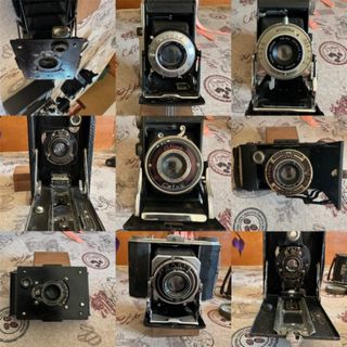 Nel mio profilo ci sono varie fotocamere antiche pieghevoli a soffietto, con i loro prezzi e caratteristiche. Perfette per regali, decorazione o collezionismo. Non sono repliche, ma autentiche antichità prodotte tra il 1900 e il 1930. Fotocamere in legno e bakelite con soffietto in pelle.