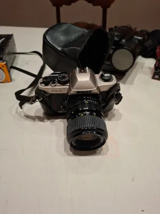 Fotocamera reflex analogica Nikon F601 in colore nero. Modello F601, marca Nikon, colore nero. Non so se funziona, non capisco di fotocamere, la vedo in buone condizioni senza nulla di rotto, la custodia inclusa è usurata ma la fotocamera sembra in buone condizioni. Non conosco il suo valore, apprezzerei qualsiasi informazione sul suo prezzo, ascolto offerte.