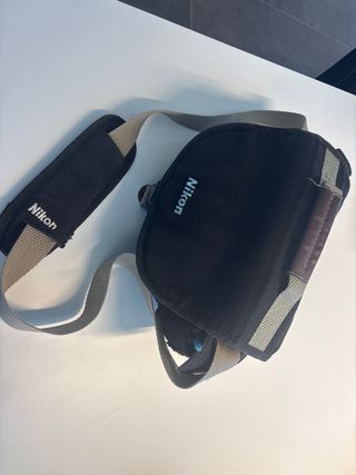 Pratica borsa per fotocamera Nikon. Progettata per proteggere la tua attrezzatura con stile. - Cinturino regolabile per una maggiore comodità. - Scomparto principale imbottito. - Maniglia superiore per una presa facile.
