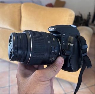 Nikon D5000 in perfette condizioni. Schermo LCD multi-angolo girevole, obiettivo AF-S DX 18-55mm, registratore video HD, sistema di riduzione della polvere, 19 modalità di scena, 12,3 megapixel, raffica a 4 fps, rilevamento del volto, connessione per GPS. Include obiettivo extra 70-300mm 1:4-5.6 Sigma. NON TRATTABILE.