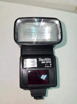 Flash Starblitz 300 DFN. In perfette condizioni. Nella sua confezione originale con istruzioni. Progettato per fotocamere Nikon AF. Include pannello diffusore. Finestra di messa a fuoco automatica.