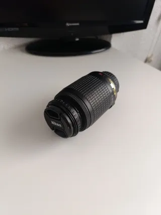 Obiettivo per fotocamere Nikon con zoom versatile. Modello AF-S NIKKOR 55-200mm. Apertura f/4-5.6. Formato DX. Ideale per fotografia di sport, fauna, ritratti a distanza e viaggi. Messa a fuoco rapida e silenziosa (motore AF-S), molto leggero e facile da trasportare. Cristalli puliti, senza muffe né graffi. Perfetto come complemento del 18-55 mm per ampliare il range di zoom. Include tappi anteriore e posteriore. Compatibile con tutte le Nikon DX (D3000, D3100, D3200, D3300, D3400, D3500, D5000, D5100, D5200, D5300, D5500, D5600, D7000, ecc.).