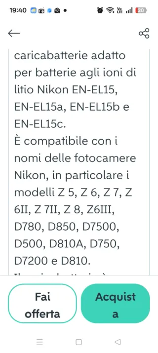 Caricabatterie per fotocamere Nikon. - Modello MH-25A. - Cavo di alimentazione incluso.