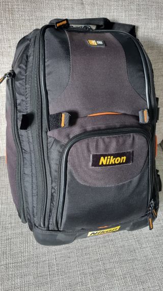 Vendo zaino fotografico Caselogic in ottime condizioni. È nero con dettagli arancioni. Logo Nikon applicati da me dopo l'acquisto. - Divisori rimodulabili - tasca posteriore per laptop/tablet - 1 tasca grande +1 piccola interna - 1 tasca esterna - 1 tasca laterale esterna - aggancio laterale regolabile con velcro per treppiede - Ideale per trasportare attrezzatura fotografica. - Robusto e ben strutturato. - Comodo da indossare. Dimensioni 45x32x21