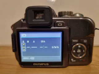 Macchina fotografica Olympus SP-550UZ, con zoom ottico 18x. Con libretto di istruzioni, Master CD-ROM e tracolla. Mancano i cavi USB e AV. Il copriobiettivo è un po' rotto e non si mantiene bene vicino all'obiettivo