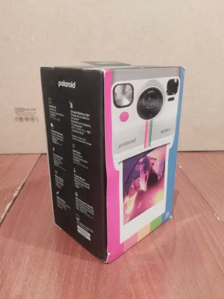 Fotocamera istantanea Polaroid Now+ nella sua confezione originale. - Batteria con durata fino a 15 pack. - Include modalità Self-timer e supporto per treppiede. - Realizzata con il 40% di plastica riciclata.