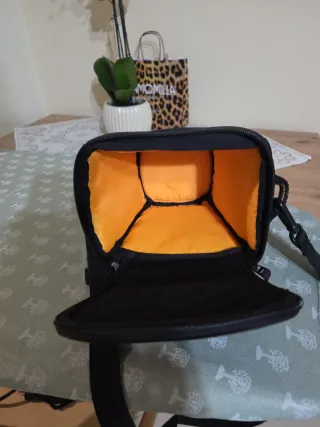 Borsa nera per fotocamere reflex, ideale per proteggere la tua attrezzatura. - Materiale resistente. - Tracolla regolabile. - Tasca frontale con zip.