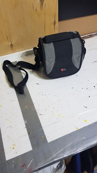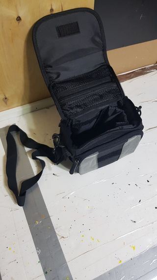 Nuovissima custodia per fotocamera con i rispettivi scomparti e sezioni, nonché cerniere e cinghie