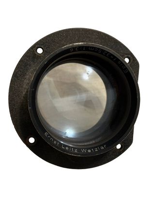 Obiettivo vintage Ernst Leitz WetzlarEpis con focale da 32,5 cm e apertura f/3,6. È un pezzo di storia dell'ottic tedesca (la stessa casa produttrice di Leica),originariamente nato per i grandi proiettori d'epoca, ma oggi ricercatissim dai fotografi che amano sperimentare.L’obiettivo é in buone condizioni con il corpo in metalloancora solido e le lenti pulite. È perfetto per chi pratica fotografia di grande formato o per chi vuole adattarlo a fotocamere moderne per ottenere scatti dal sapore unico.Un pezzo robusto e di grande fascino.