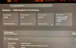 Un computer desktop HP dal design moderno - Case color argento - Ideale per postazioni di lavoro - completo di monitor 24 pollici full HD e di Accessori Non è adatto a fare girare giochi attuali , funziona bene con giochi meno recenti e game pass Prezzo 180 € Consegna a mano nel mio domicilio ( Milano sud ) Processore I5 8400 RAM 8 GB Scheda video GeForce 1050 Storage 1 TB