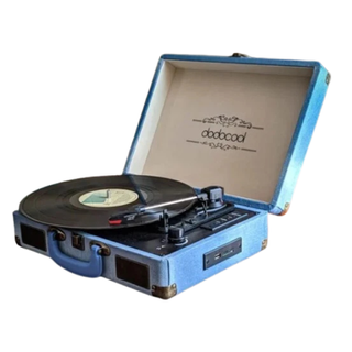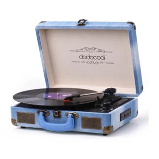 Giradischi portatile con design retrò in colore blu. Utilizzato solo una volta. Lo vendo per mancanza di utilizzo. È in perfette condizioni. Caratteristiche: - Disco a 3 velocità. - Altoparlanti integrati. - Connessione Bluetooth. - Porta USB. - Uscita RCA. - Ingresso ausiliario. - Design tipo valigia con maniglia.