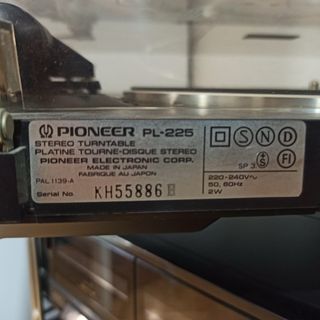 Giradischi Pioneer PL-225. - Modello: PL-225 - Prodotto in Giappone - Tensione: 220-240V~ 50, 60Hz - Consumo: 2W