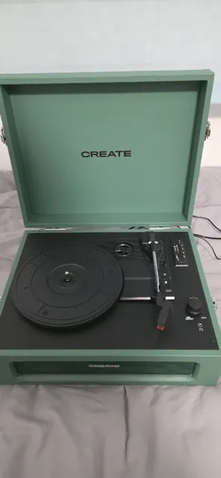 Altre OFFERTE NEL MIO PROFILO Tocadiscos portatile tipo valigia, funziona perfettamente e suona sorprendentemente bene per le dimensioni che ha. Design vintage elegante, nero con dettagli dorati. È fantastico in qualsiasi soggiorno, non è il tipico apparecchio brutto. 🔹 Riproduce vinili 🔹 Bluetooth (puoi collegare il cellulare e usarlo come altoparlante) 🔹 Altoparlanti integrati 🔹 Uscita cuffie 🔹 Ingresso Line In / RCA 🔹 Portatile, si chiude come una valigia e lo porti dove vuoi