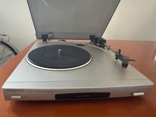 Vendo giradischi Kenwood P-110 argento, anni 2000, semi-automatico con preamplificatore phono integrato (si collega direttamente a PC/amplificatori moderni senza box extra). Funzionante al 100%, testato su vinili 33/45 giri. Include: alimentatore originale, cavi RCA stereo, coperchio antipolvere. Buone condizioni estetiche (vedi foto), no graffi sul piatto, testina ok.