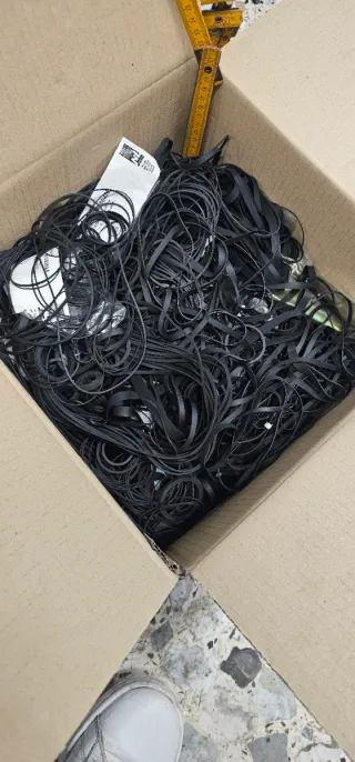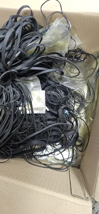Confezione di elastici neri, ideali per motorini elettronici. Ricambi videoregistratore, mangiacassette,dvd,giradischi..... - Materiale: gomma. - Colore: nero. - Quantità: oltre 1000 pezzi.