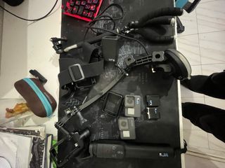 Lote di 7 pacchetti di accessori compatibili con GoPro. Include supporti, adattatori e viti. Vari tipi di adesivi 3M. Cintura per casco e montaggio per berretto. Bastoncino selfie estensibile. Cintura da polso e accessori di ricarica. Da tenere in considerazione che alcuni accessori sono stati usati e altri no. Si consegnano i 7 portafogli con tutto mostrato nelle ultime foto. Chiedere senza impegno.