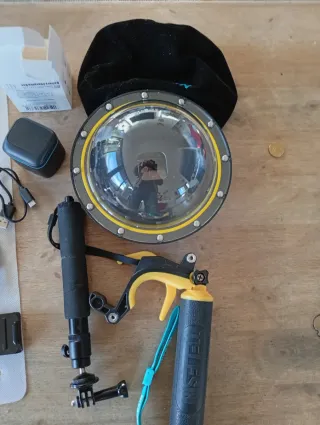Questo accessorio Telesin è progettato per le fotocamere GoPro Hero 5, 6 e 7, ed è compatibile anche con altre fotocamere sportive di altre marche. Include: - Porta dome da 6 pollici. - Include tutti gli accessori di montaggio e un cinturino da polso. - Viene con un panno di pulizia. - NUOVO, nella sua confezione originale. Lo vendo perché ho cambiato fotocamera sportiva.