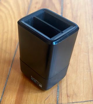 Caricabatterie rapido per batterie GoPro Hero 5, Hero 6, Hero 7 e Hero 8. Carica due batterie contemporaneamente senza dover usare la fotocamera, per un'esperienza GoPro migliore. In regalo una batteria usata funzionante. Il cavo USB-C non è incluso (usare il cavo della fotocamera).