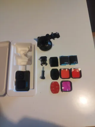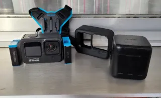 Fotocamera d'azione GoPro Hero 10. Perfetta senza segni. L'ho comprata pensando a una nuova vita come videografo e ha resistito a tre video. - Include custodia protettiva. - Accessori di montaggio. Uno per casco e un altro a pinza. - Batterie aggiuntive e caricatore triplo. - In più un gancio per foto, parte dell'imbracatura toracica. Disponibile anche l'imbracatura toracica. Pacco completo a 280€