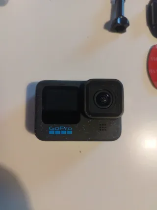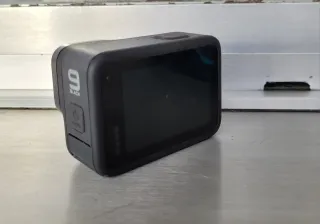 Fotocamera d'azione GoPro Hero 9 Black in colore nero. Include custodia di trasporto ufficiale e accessori. - Custodia di trasporto ufficiale. - Treppiede ufficiale. - Pinza ufficiale. - Supporto per petto. - Supporto per testa. - Supporto per zaino. - Accessori di montaggio. - Batteria. Presenta alcuni graffi estetici ma funziona perfettamente, la uso per lavori pubblicitari e la lente è ancora come nuova.