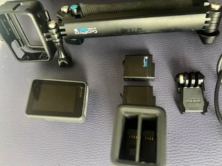 Fotocamera d'azione GoPro Hero 9 Black con accessori. Include supporto per casco moto, 2 batterie (non originali) + 1 originale, stazione di ricarica, protezione per lenti e schermo + protezione in silicone. Stato generale buono, non negoziabile, il prezzo è già al minimo accettabile.