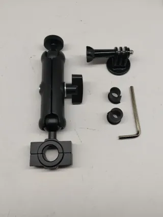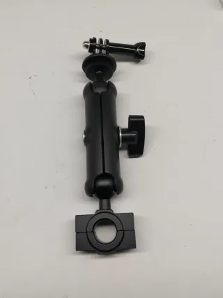 Supporto articolato per fotocamere GoPro. Realizzato in metallo nero. Base con fascetta per tubo. Connettore standard per accessori GoPro.