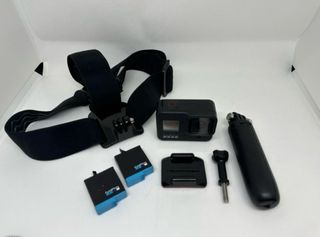 Fotocamera d'azione GoPro Hero 7 Black con vari accessori per le tue avventure. Include: custodia protettiva, supporto da polso, caricatore triplo per batterie, batterie extra, cavo di ricarica USB, supporti di montaggio.