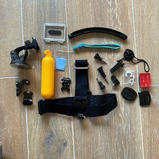 Kit di accessori per GoPro. - Supporto per petto. - Monopiede per selfie. - Supporto per testa. - Vari supporti e adattatori.