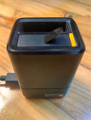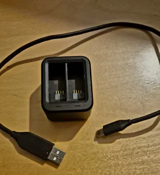 Caricatore doppio per batterie GoPro. - Design compatto. - Permette di caricare velocemente due batterie contemporaneamente. - Include cavo USB. Pari al nuovo. Utilizzato per una settimana in vacanza l'estate scorsa. Le batterie compatibili sono quelle per GoPro 9-12 (anche Enduro). Venditore 5 stelle