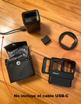 Kit di accessori per fotocamere GoPro Hero 5 6 o 7. Include: - Caricatore rapido dual per batteria - Una batteria di riserva - Custodia Ulanzi V2 per vlogging - Adattatore per filtri da 52mm - 3 filtri (UV, CPL e ND8) con custodia. Nota: non include il cavo USB-C, poiché si utilizza quello della fotocamera.