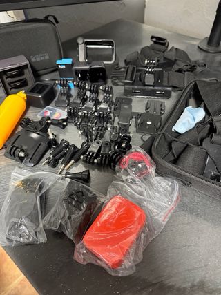 In vendita un pacchetto completo di GoPro Hero 9 con MOLTI accessori. - GoPro Hero 9 Black. - Modulo multimedia (Media Mod). - Filtri ND (Neutral Density). - 2 schede da 64 e 34 GB. - Batterie aggiuntive. - Caricatore doppio. - 2 custodie. - tutti i tipi di supporti e accessori di montaggio.