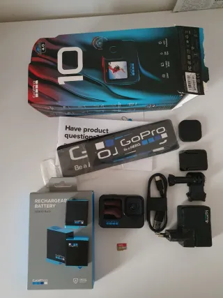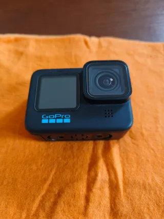 Action camera GoPro Hero 9 Black. Usata pochissimo, funziona perfettamente. Ha ancora la pellicola nel display anteriore. - Registra video fino a 5K/30fps per riprese super nitide e dettagliate, ideali anche per editing e ritagli in post-produzione. - Scatta foto da 20 MP con ottima qualità. - Stabilizzazione HyperSmooth 3.0: video fluidi anche in movimento o in situazioni estreme. - Display frontale a colori per inquadrature perfette quando ti filmi e touch screen posteriore. - Resistente e impermeabile fino a 10 m senza custodia. - Include batteria, cavo e custodia.