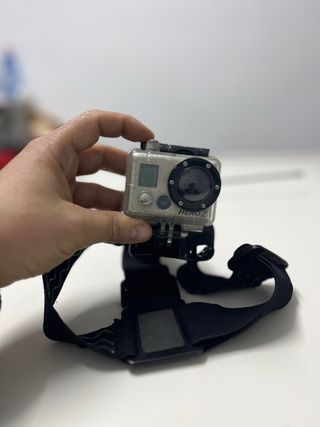 Fotocamera d'azione GoPro Hero 2 con accessorio di fissaggio. - Fotocamera compatta e resistente. Solo la scocca stagna per l'acqua e proteggerla! - Include fascia per la testa.