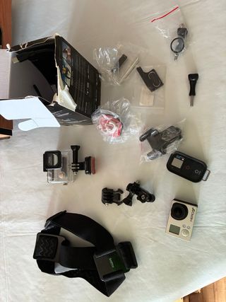 Include: pettorale di montaggio, montaggio per la testa, monopiede e adattatori, 4 batterie Gopro con caricabatterie e cavo, caricabatterie per auto, montaggio per auto, 3 batterie Neewer per Gopro con caricabatterie e cavo. La Hero4 ha l'angolo inferiore dello schermo rotto e parte della plastica è un po' deteriorata, inoltre 2 delle batterie, sebbene funzionanti, sono un po' gonfie. Entrambe le fotocamere funzionano correttamente. ℹ️ Go PRO ✅in condizioni accettabili. ⚠️ Prezzo non negoziabile. 💶 Pagamento: carta, paypal o bizum. 📦 Spedizioni: tramite corriere espresso, Correos, Mondial relay ℹ️ Paga o ritira in negozio, se...