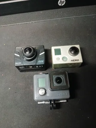 Set di action cam GoPro e AEE. - Action cam GoPro Hero 3. - Action cam AEE. - Ideale per sport e avventure. - Necessita cambio batteria.