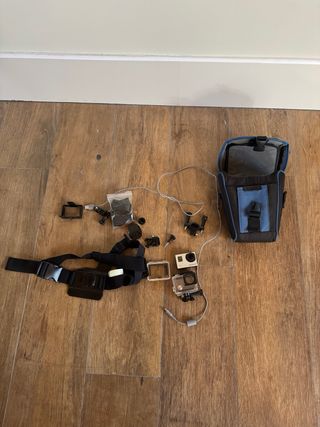 Fotocamera d'azione dotata di numerosi accessori, GoPro Hero 3 in colore nero e argento. Ideale per catturare le tue avventure. Modello: Hero 3, Marca: GoPro.