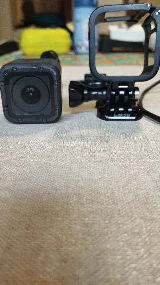 Fotocamera d'azione GoPro Hero 5 Session con alcuni accessori: - Palo selfie - Custodia metallica con ancoraggio - Protezione per lo schermo (oltre a quella preinstallata) - Custodia in schiuma per un miglior suono - Design compatto e leggero. - Custodia resistente.