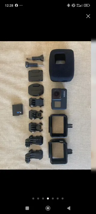 Fotocamera d'azione GoPro HERO 7 Black. Funziona perfettamente, contiene il caricatore, custodia per proteggere da urti e sott'acqua, batteria, non ha SIM. L'unico difetto è che gli slot sono un po' rigidi ma sono in buone condizioni.