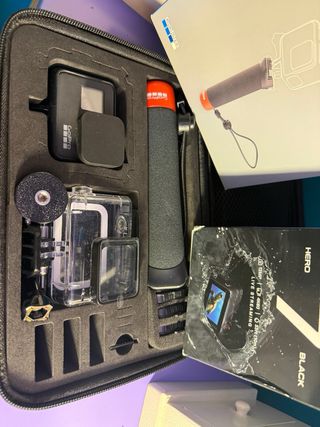 Fotocamera d'azione GoPro Hero7 con valigetta di accessori.