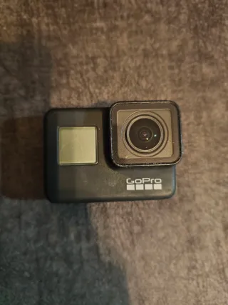 Fotocamera sportiva GoPro Hero 7 Black in colore nero. Ideale per catturare le tue avventure. La fotocamera funziona perfettamente, la lente e lo schermo non hanno nemmeno un graffio. Manca un coperchio su un lato, può essere acquistato a 6€ su AliExpress o utilizzato senza il coperchio. - Risoluzione video 1440p a 60fps. - Modalità foto. - Slot per scheda SD.
