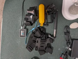 Pacchetto di accessori per GoPro Hero 7 Silver. - Impugnatura galleggiante con custodia originale - Supporto per fotocamera adventure con treppiede laterale originale (valore 40 euro) (rottura laterale che non influisce sulla presa in fotografia) - Custodia protettiva trasparente (marca non GoPro, sommergibile per protezione extra) una delle quali nuova.