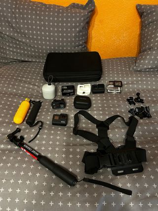 Vendo fotocamera GoPro Hero 7 Black con una vasta gamma di accessori, molteplici basi e supporti, oltre a bastoni per selfie, treppiede... Ho comprato la fotocamera nuova e l'ho accesa solo una volta ma non l'ho mai usata, quasi tutto è nuovo, ha la sua custodia per riporre la fotocamera e gli accessori.